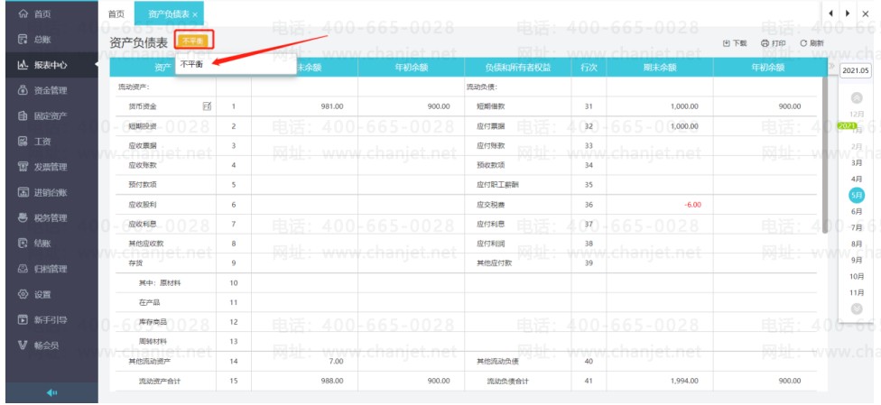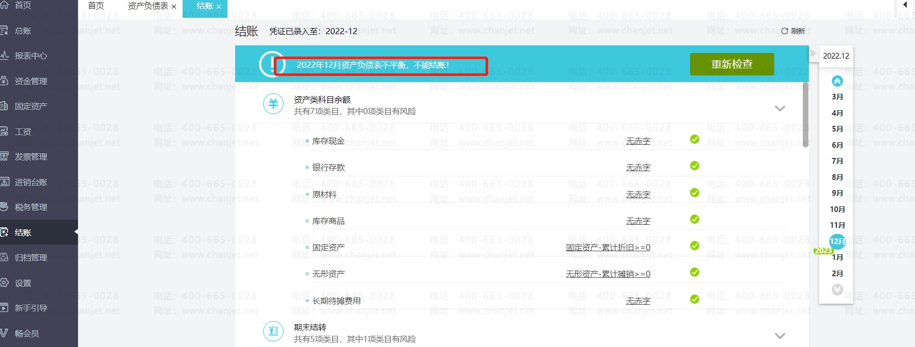 畅捷通好会计结账的时候提示资产负债表不平衡