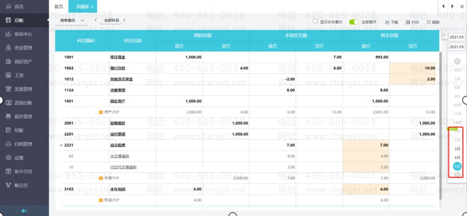 依次点击【总账】-【余额表】,查看对应月份的损益科目是否存在期初余额,如果存在,则需要追溯上个月将期末结转凭证重新生成,结转后将期初损益余额为0就可以了