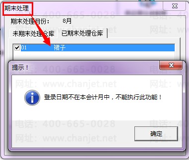1、如果在9月份对核算模块进行取消月结后,直接取消“月末处理“则会提示:”登录日期不在本会计月中,不能执行此功能!“,所以需要登入到8月份取消月末处理。