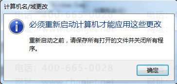 3、系统会提示需要重新启动计算机,点击“确定”,重新启动电脑就更改好计算机名称了。如下图所示:
