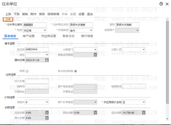 往来单位启用审核功能后,对往来单位信息进行变更时【开票地址】和【开票电话】置灰不可变更?