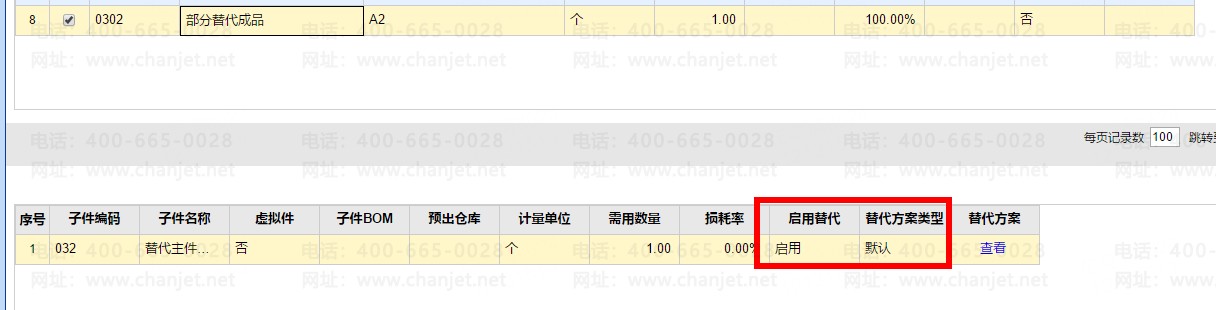 重新查询物料清单“启用替代”更新为“是”,“替代方案类型”显示为“默认”: