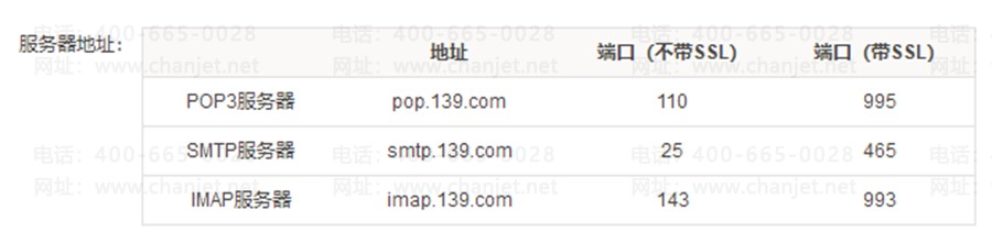 9、139邮箱的POP3服务器为pop.139.com;SMTP服务器为smtp.139.com。