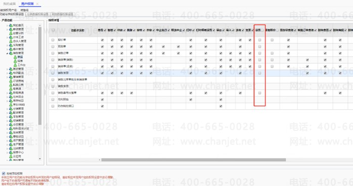 2、取消勾选对应单据的设置权限