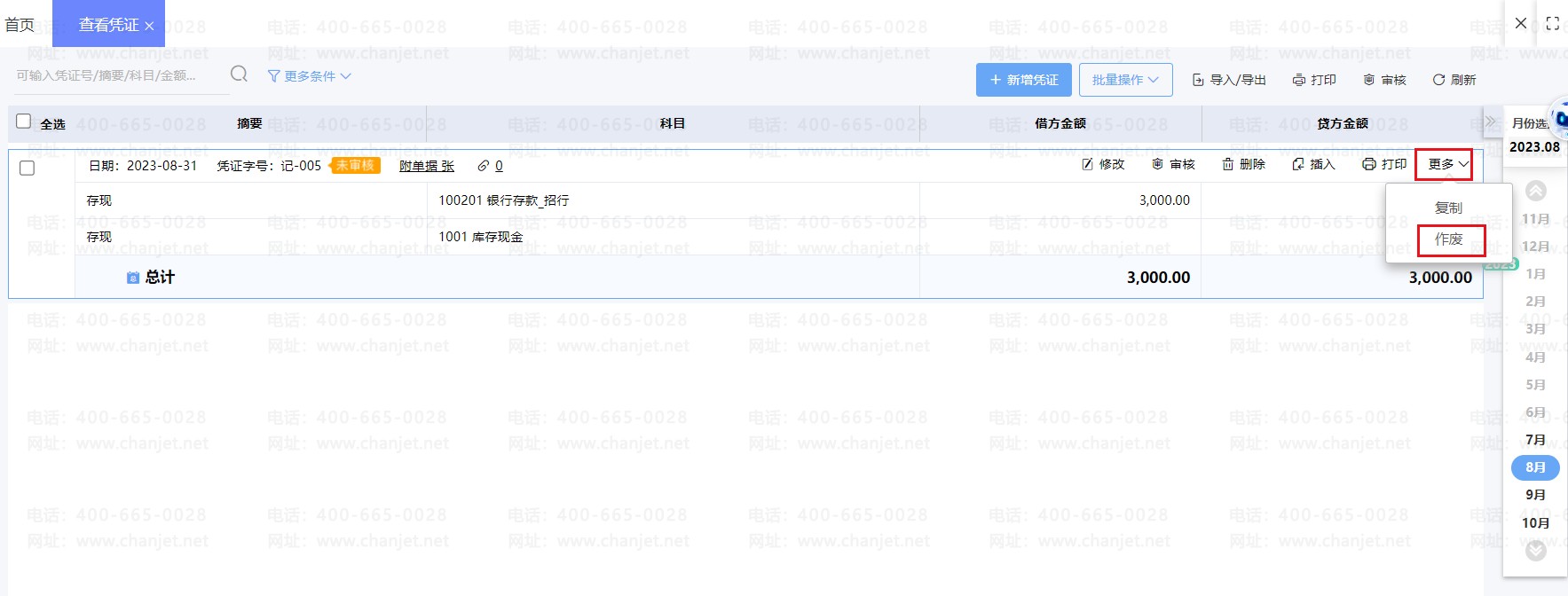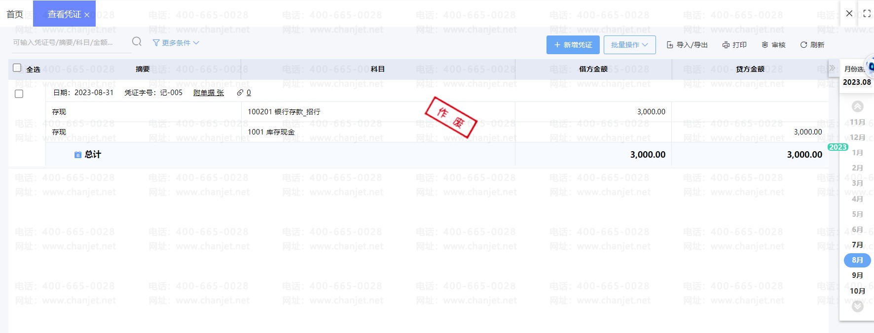 4、凭证显示【作废】