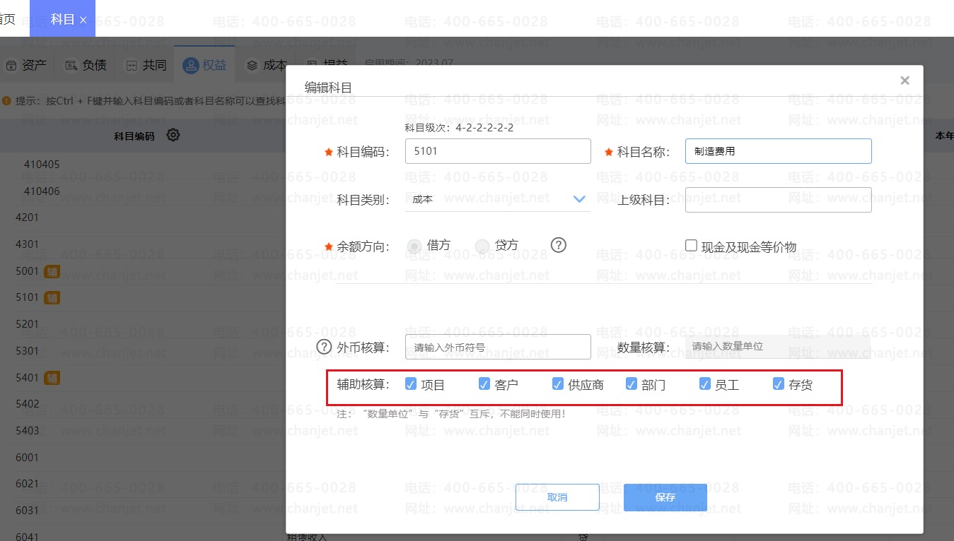 科目的辅助核算可以全部勾选启用吗?