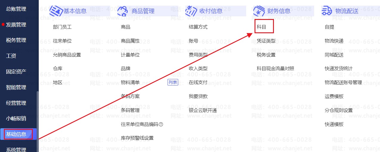 1、点击【基础信息】-【科目】