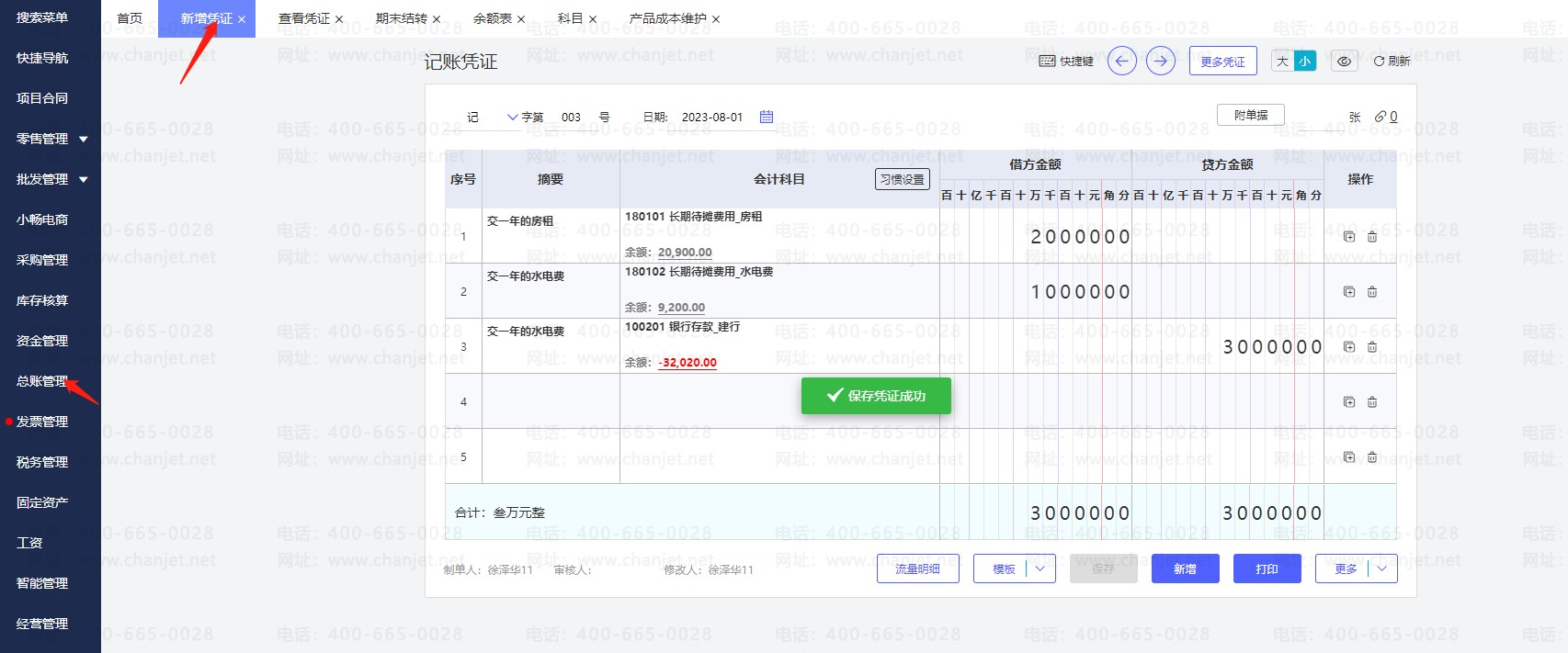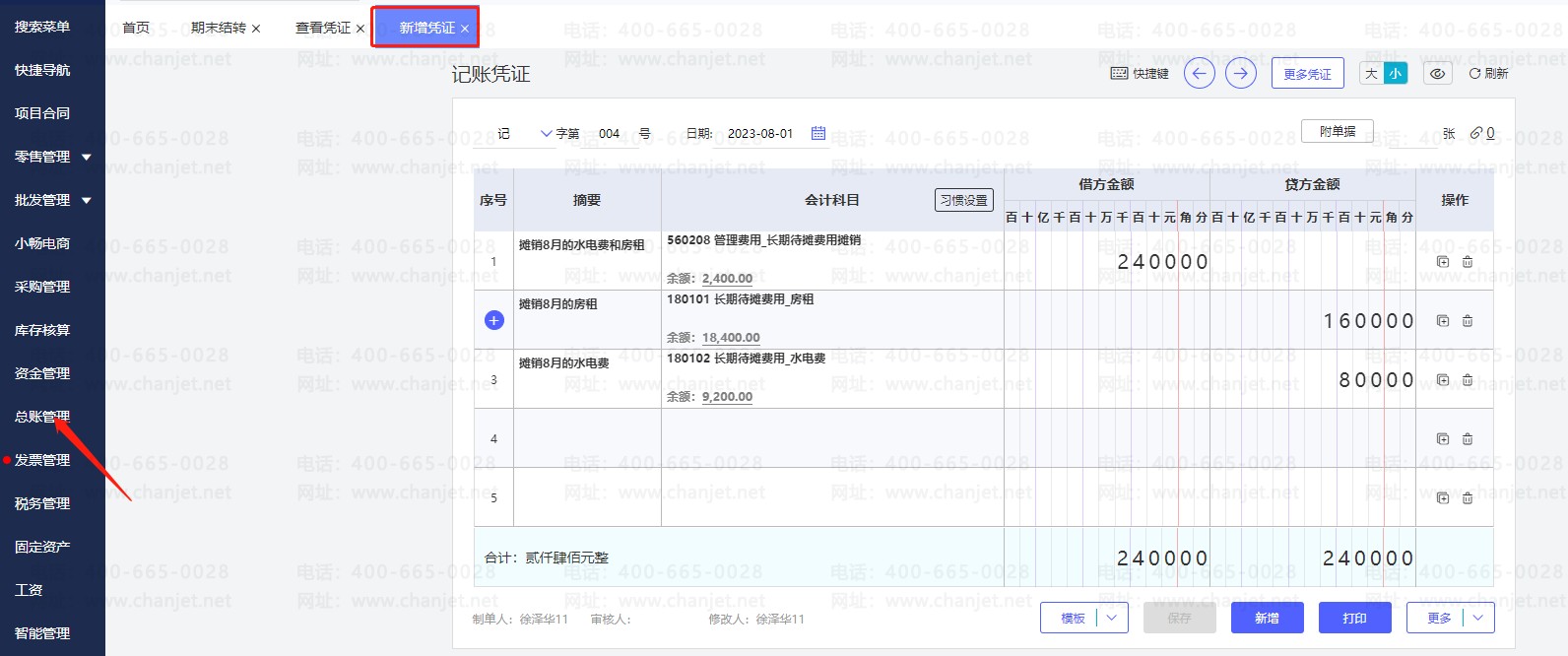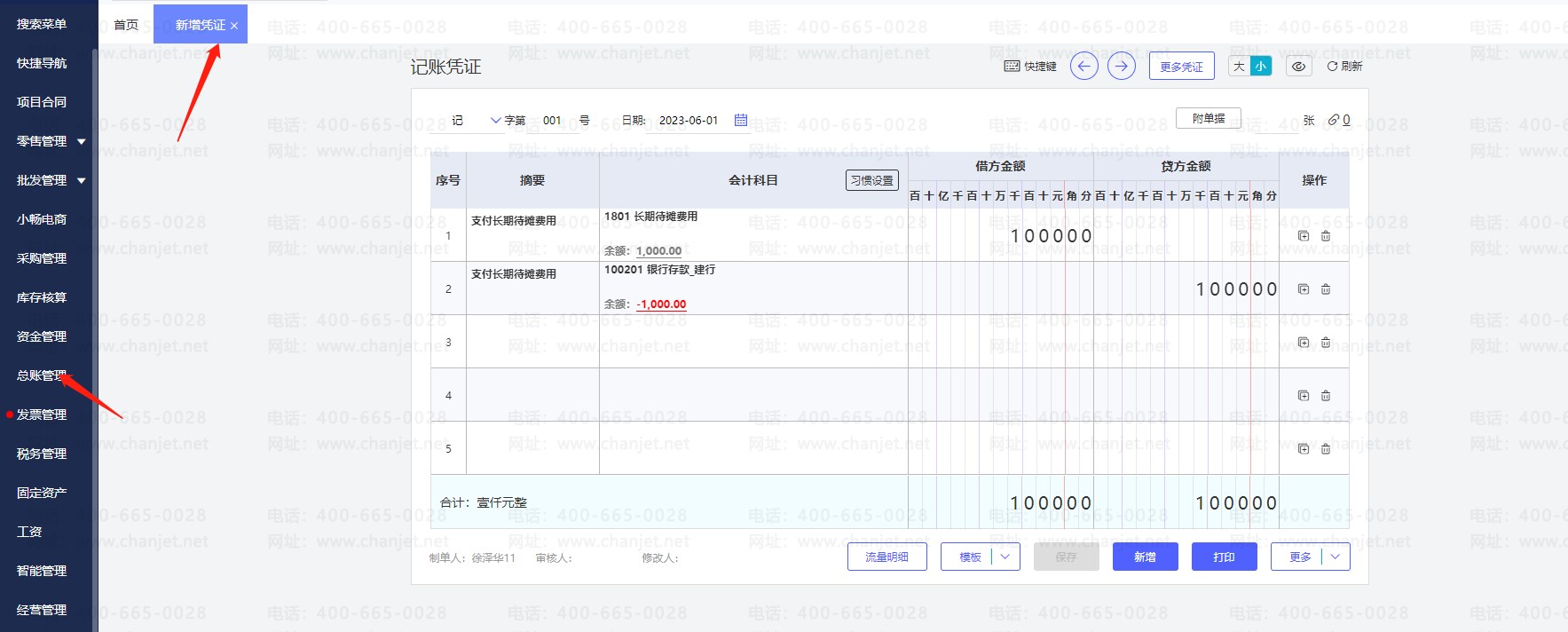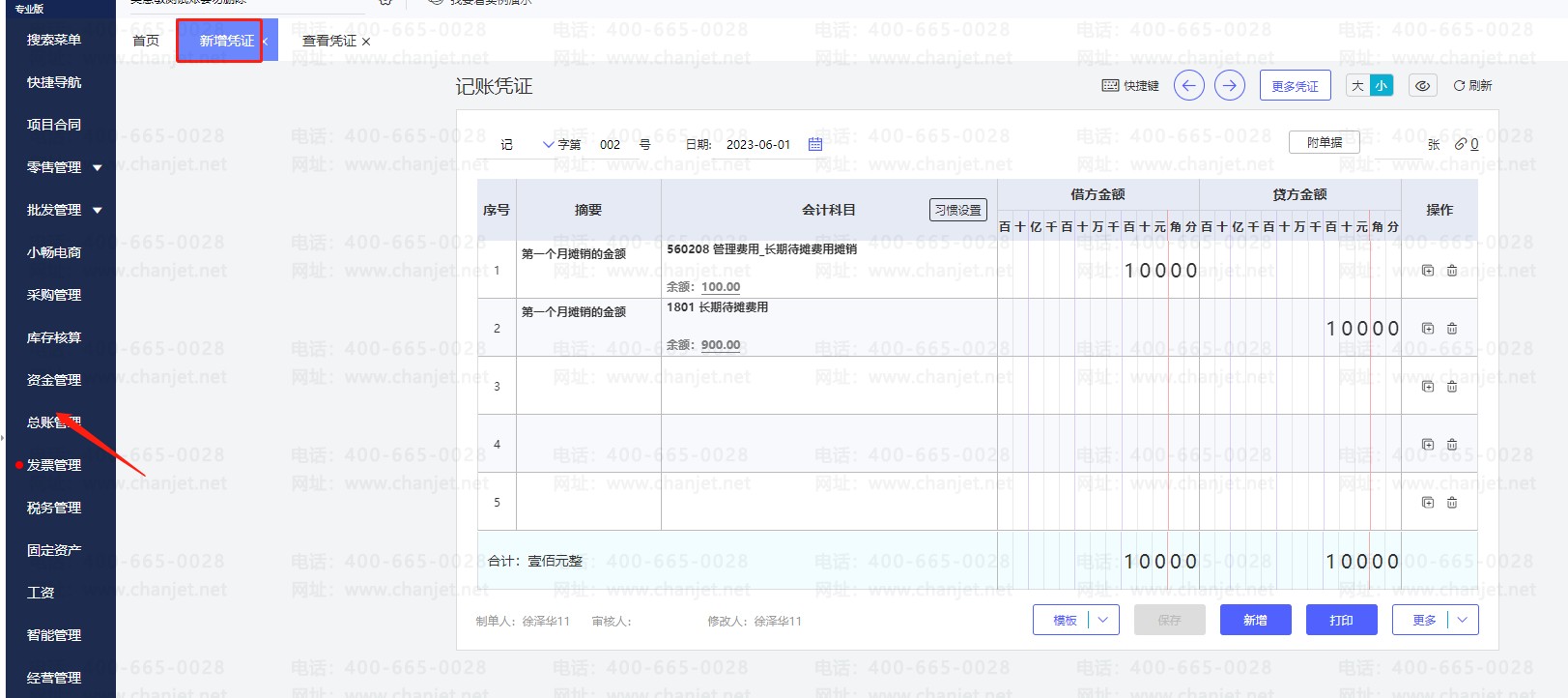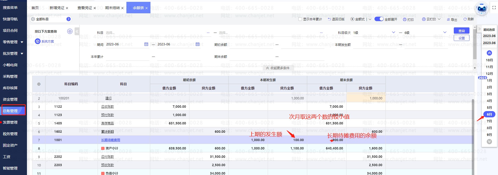 1.如果长期待摊费用只有一级科目:在总账管理新增2023年6月份月份手工做了一张发生摊销费用凭证(借:长期待摊费用 贷:银行存款等)一张摊销待摊费用凭证(借:管理费用—长期待摊费用 贷:长期待摊费用)
