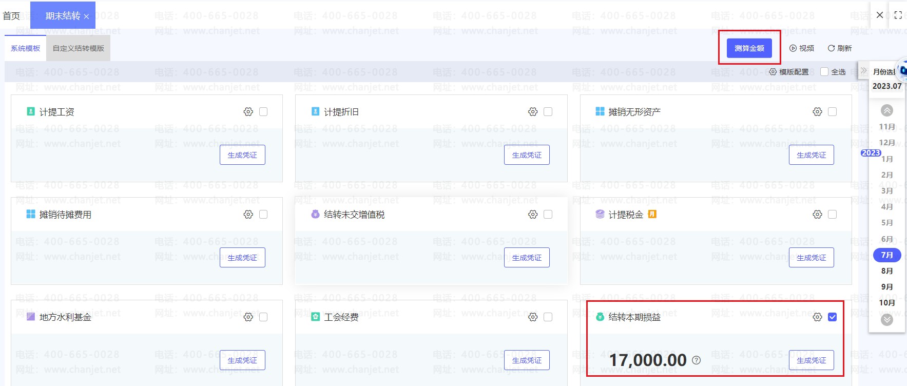 5、凭证修改完成之后再去【总账管理】-【期末结转】里面勾选期间损益结转进行重新测算金额进行结转