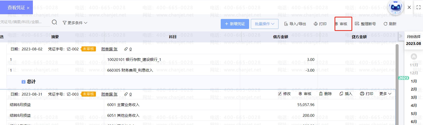 2.再重新刷新系统(快捷键:F5),可以发现,查看凭证这里,出现审核按钮