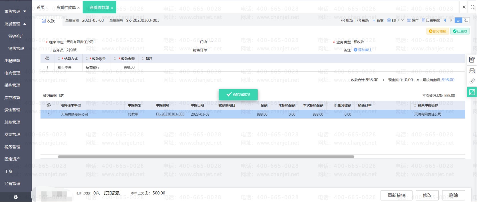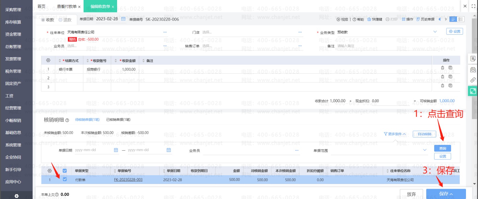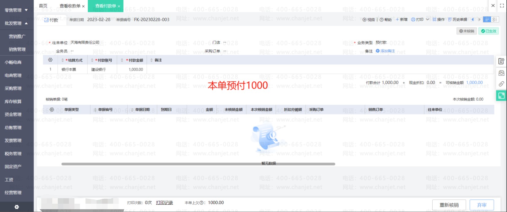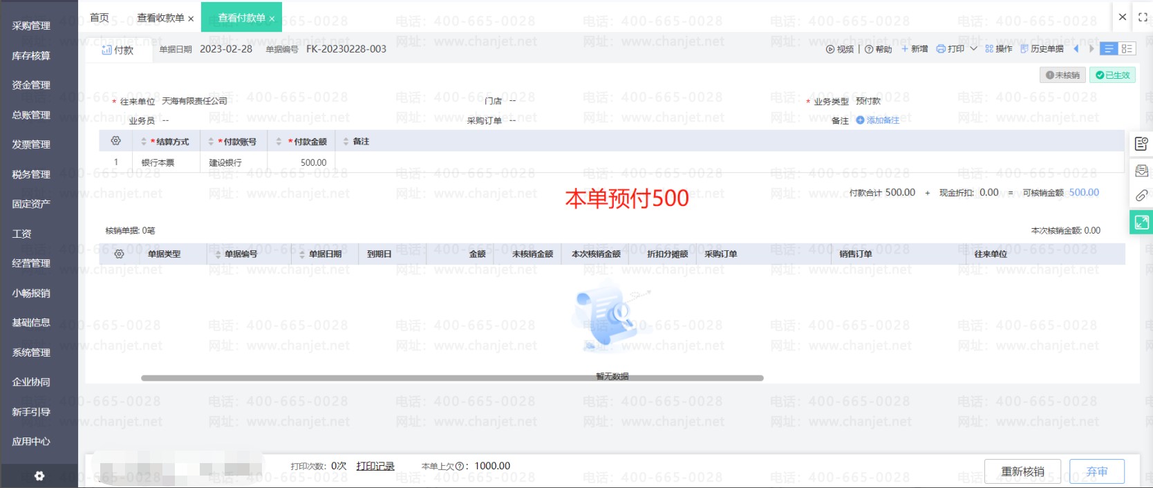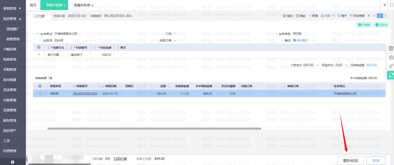 预收款单和预付款单核销之后,如果发现核销有误则需要取消核销。