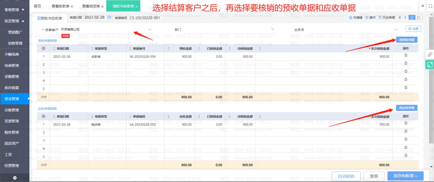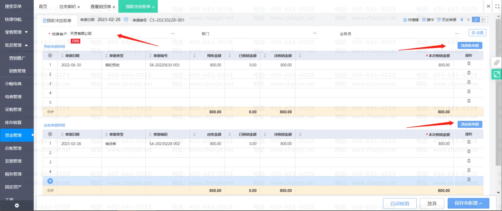通过做预收冲应收单核销了预收款单和销货单。之后发现预收款单或者销货单内容有误需要修改,那么必选要先取消预收款单和销货单的核销,唯一的方式就是删除预收冲应收单。