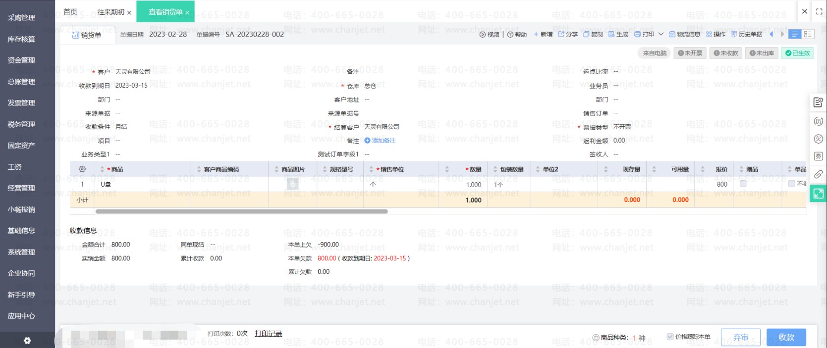 销货单上勾选使用了预收款之后,预收款单和销货单即核销。若之后发现预收款单需要修改一些内容,那么必须要先取消核销之后才能修改预收款单。