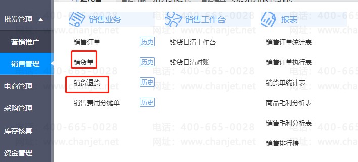 2.客户退货回来,进入【批发管理】-【销售管理】-【销货单】\【销货退货单】做一笔往来为北京迅达公司的红字销货单或者蓝字销货退货单。