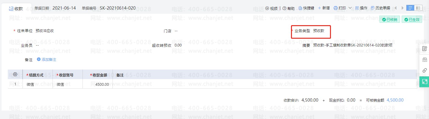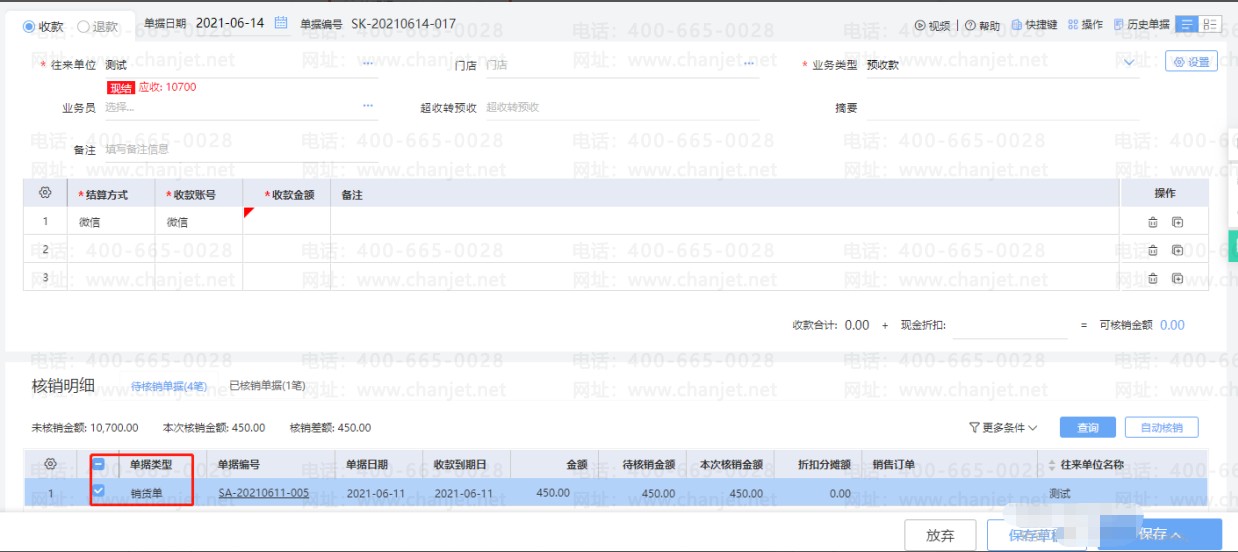 适用于不需要确认收款是针对哪张单据或者哪笔商品,只需要记录是收哪个客户的款项的情况。