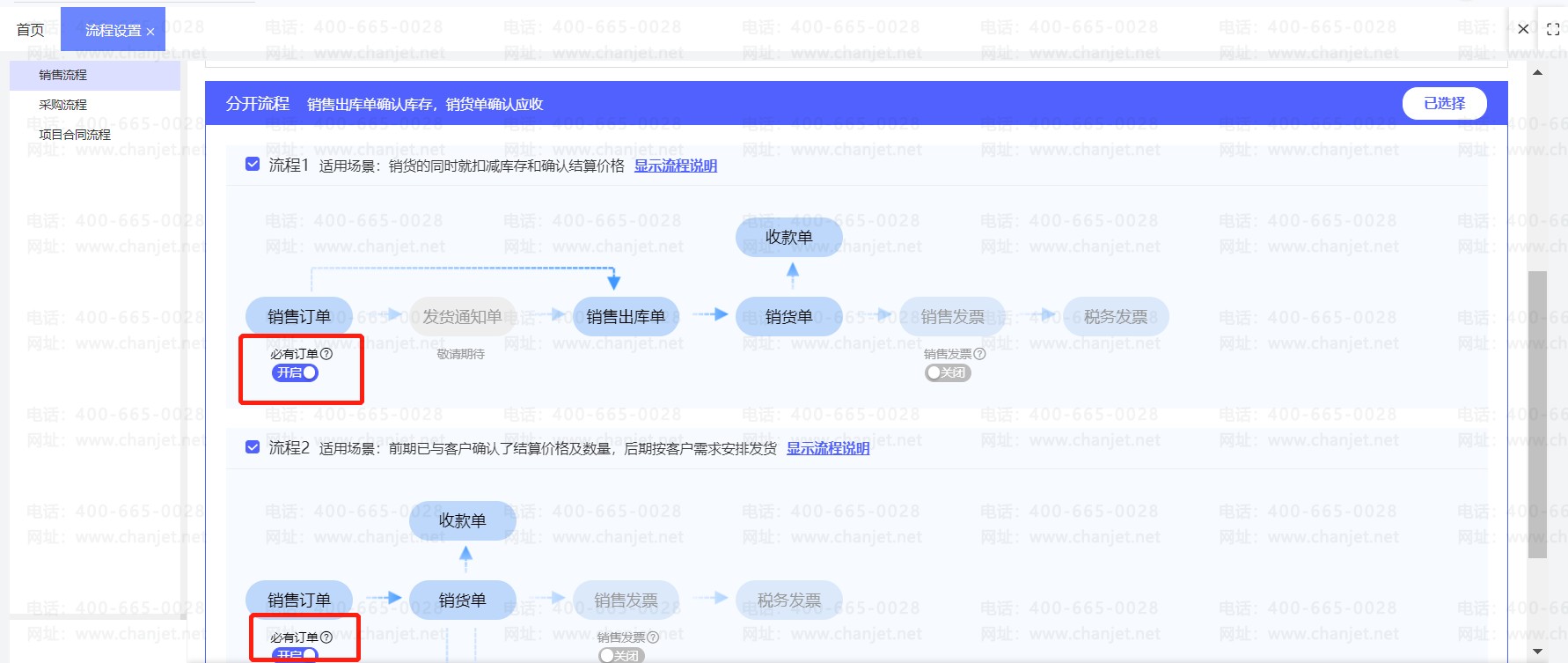 销售业务必有订单有两种设置方法