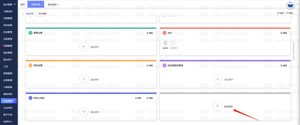 1. 点击【系统管理】-【权限设置】,点击【添加角色】,新增自定义角色
