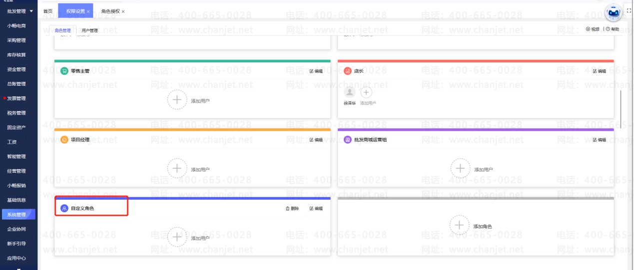畅捷通好业财如何添加自定义角色
