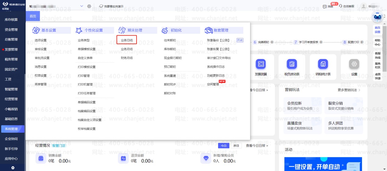 路径:【系统管理】-【业务日结】