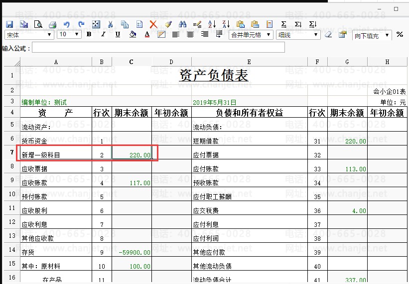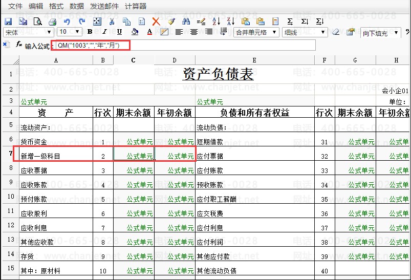 怎么确认呢?只要将科目余额表与报表进行核对,就会发现新增了一个一级科目,此时在【T-UFO】-【报表设计】中将公式设置好: