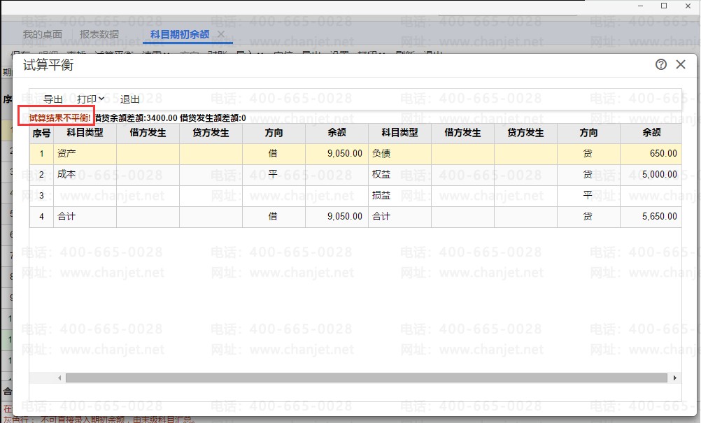 还有一种情况就是资产负债表期初就不平。期初造成的期末余额不平,先在科目期初中进行试算平衡,然后再将科目期初与之前的期末数据进行核对,再将科目期初补录好后再出报表;