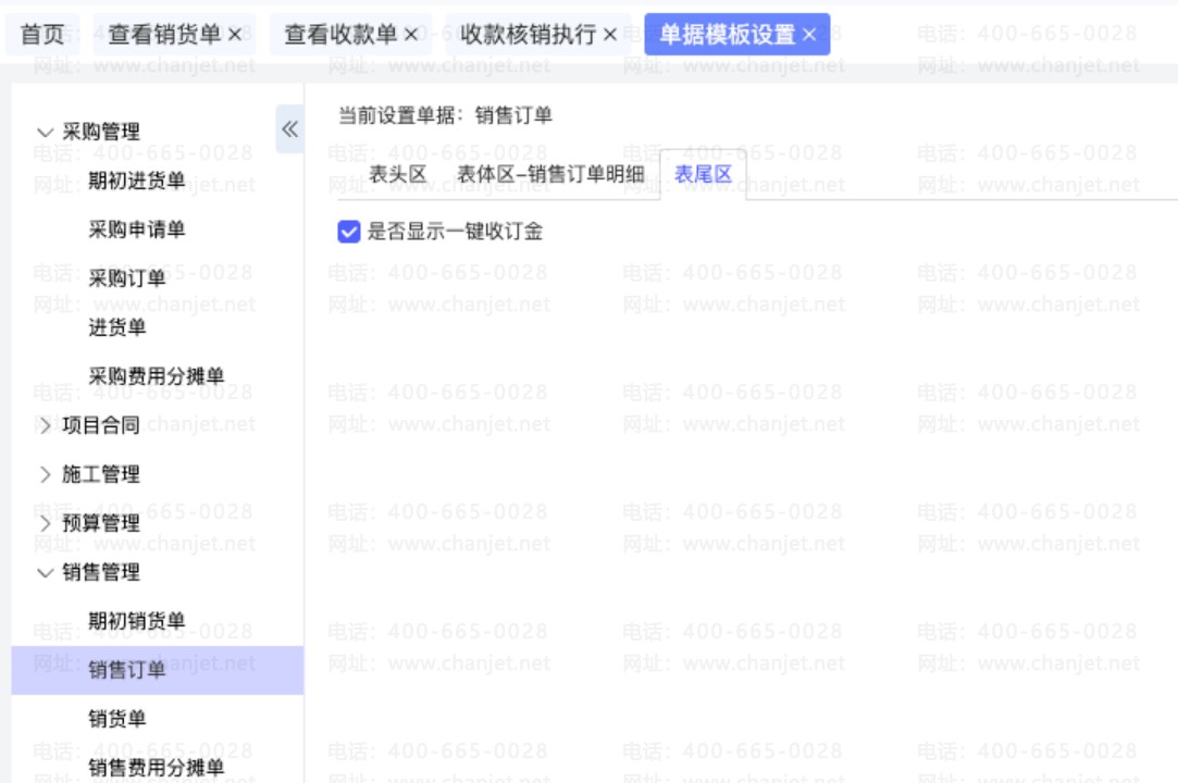 销售订单界面没有一键收定金的按钮。