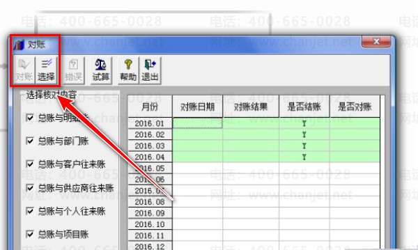 2、然后我们依次选择弹出【对账】选项框。