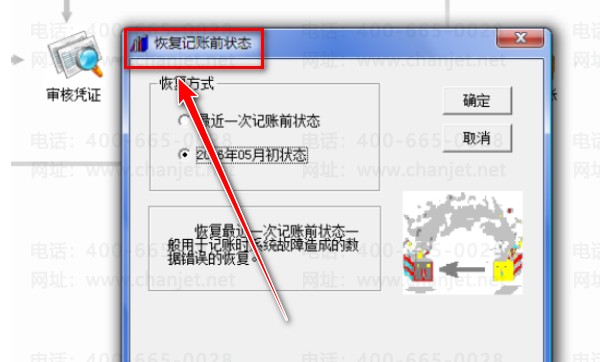5、我们单击【恢复记账前状态】,在弹出的对话框中,选择相应的选项,单击【确定】。
