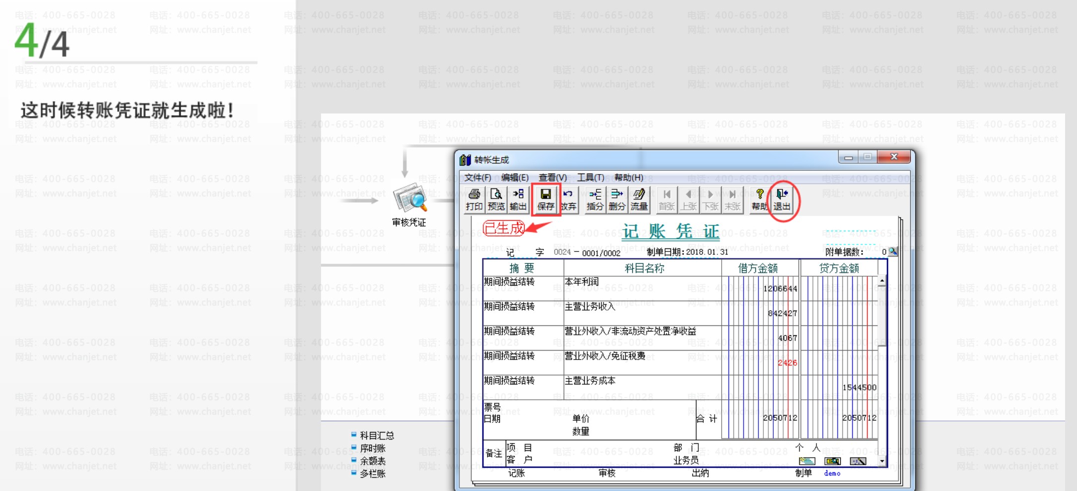 步骤四、用友T3软件会自动生成一张期间损益的凭证,点击保存,后续审核即可。