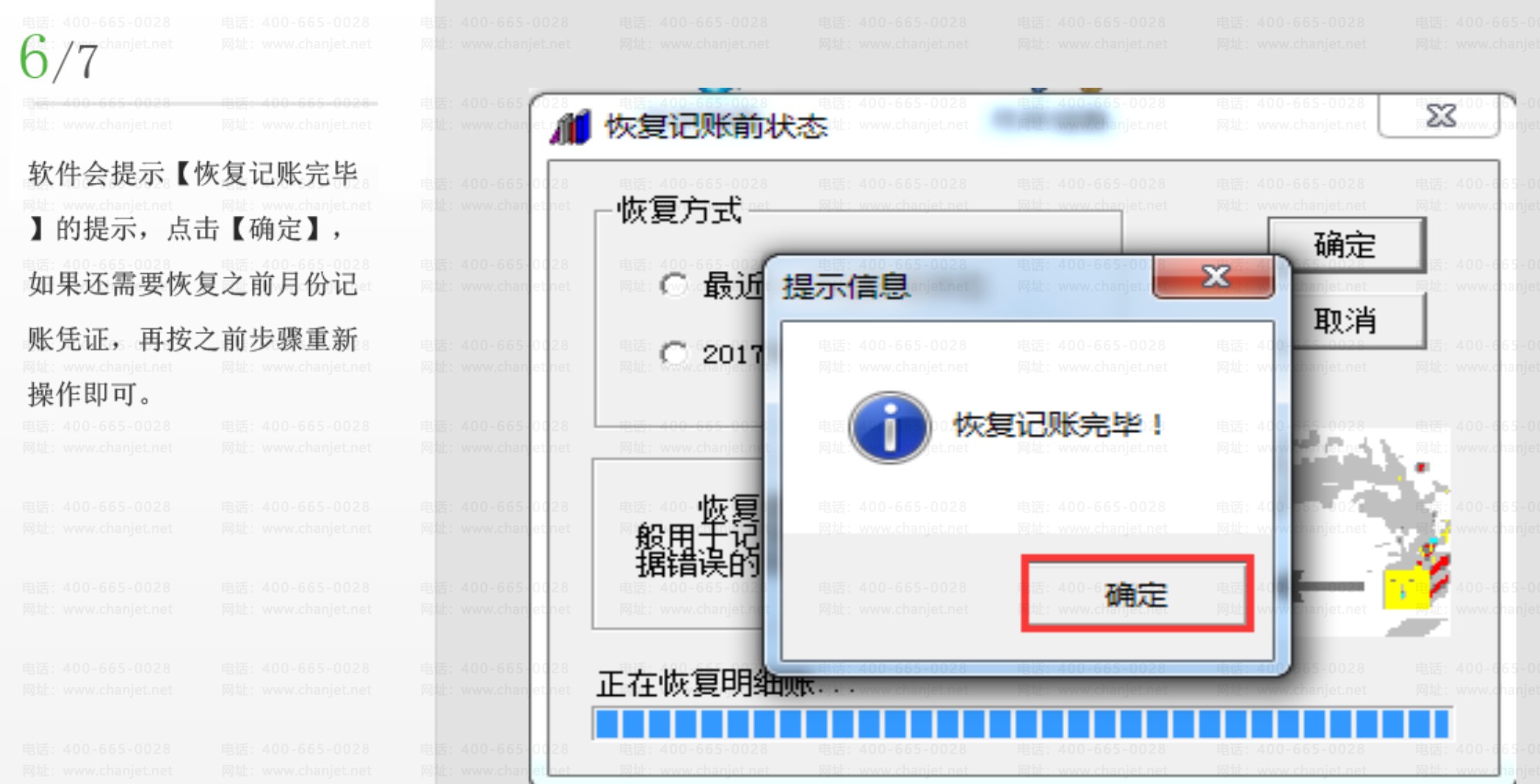 步骤六:软件会提示恢复记账成功,完成本月凭证反记账操作。