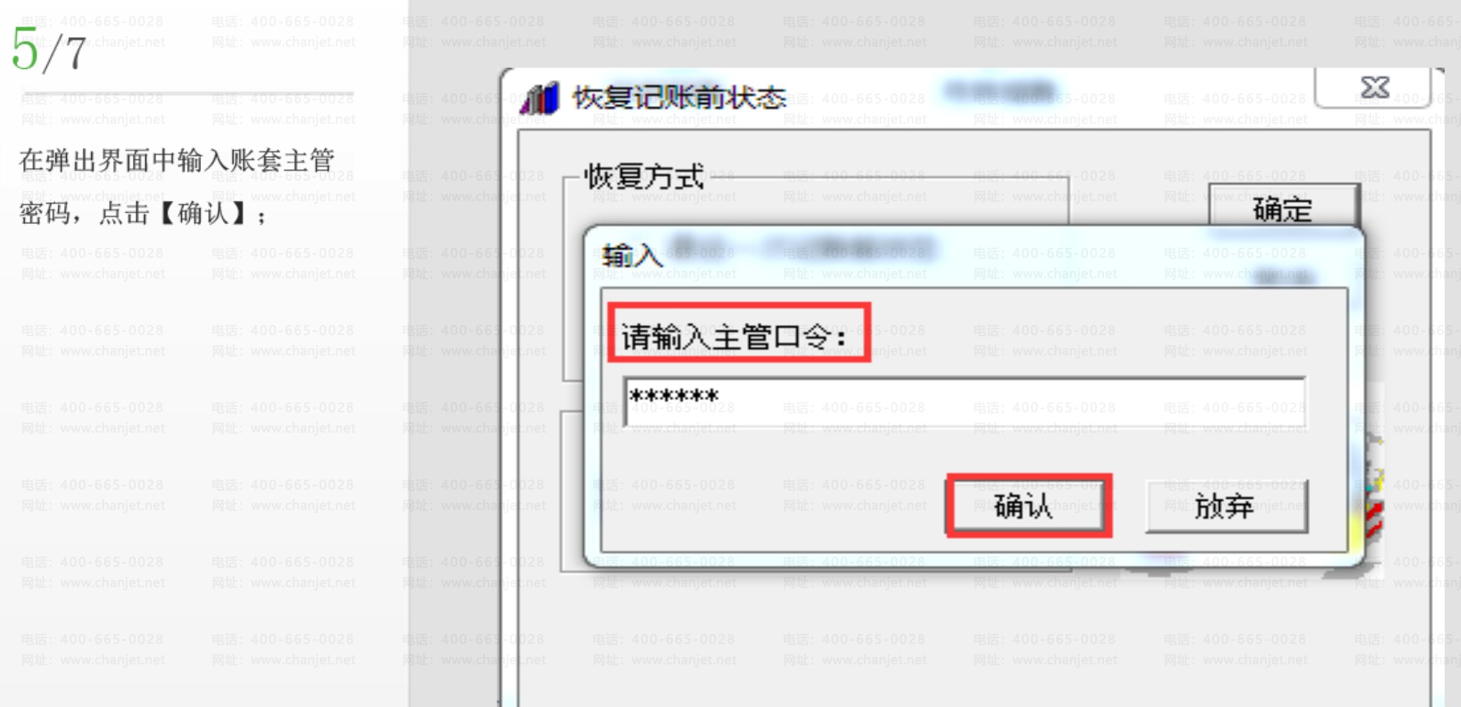 步骤五:在弹出界面中输入账套主管的密码,点击确认