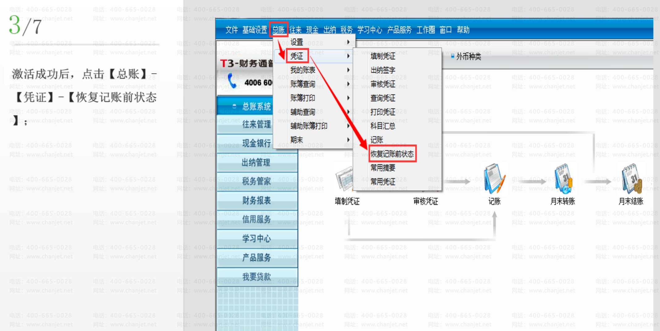 步骤三:激活成功后,点击【总账】-【凭证】-【恢复记账前状态】