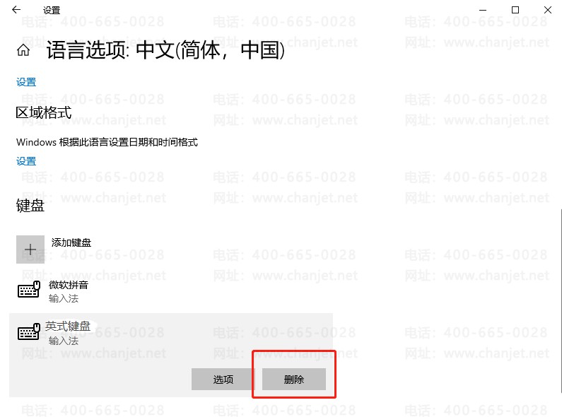 往下拉,在键盘中找到英式美式键盘,点击删除即可