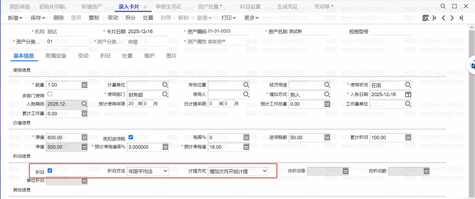 (若卡片还没计提折旧的话可以直接在对应卡片上将卡片的折旧勾勾选上即可)