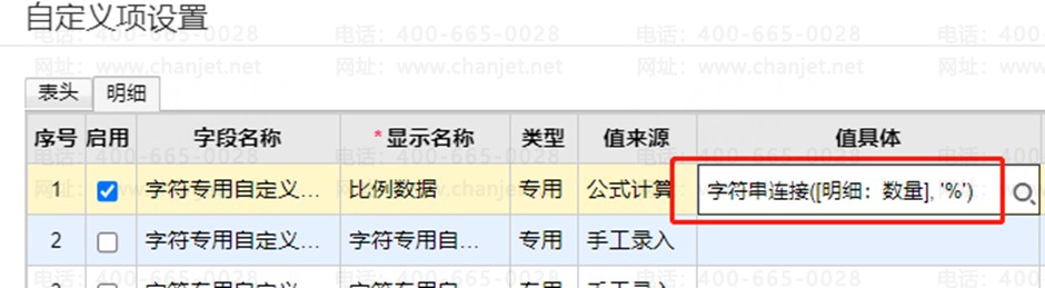 2.  以字符专用自定义项设置为例新增,值来源选择公式计算