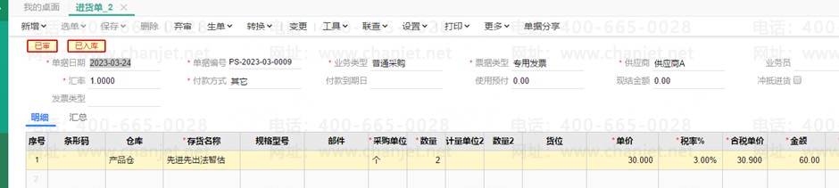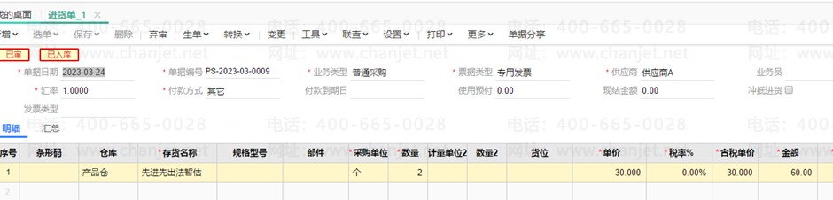 2.2.3月份入库单的票全部到了,生成进货单,单价为30,查询存货明细账情况,会对应生成出库调整单,此调整单调整的成本金额计算是对应该入库单对应的销售出库单当时的出库单位成本28与3月到票后实际入库单位成本30的差异进行调整,即为 (实际入库单位成本-当时销售出库单位成本)*数量=(30-28)*1=2,所以发票到的月份对应是出库调整成本为2。