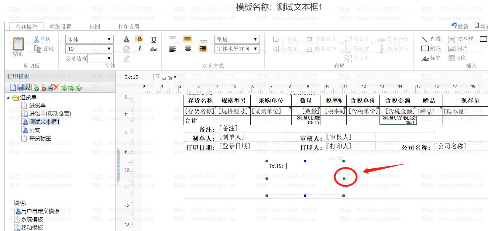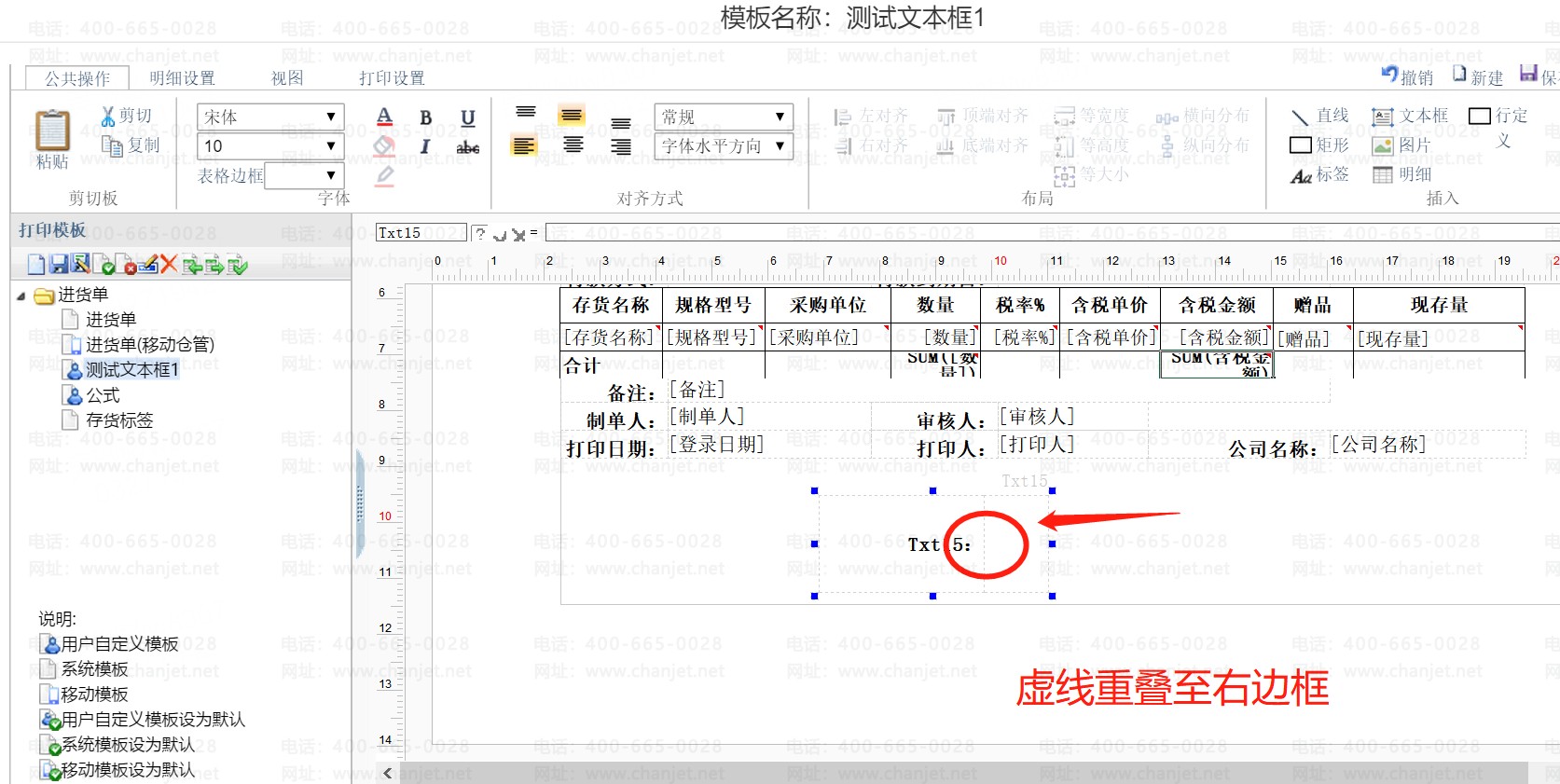 打印模板设置内插入【文本框】如何取消文本框内的竖线?