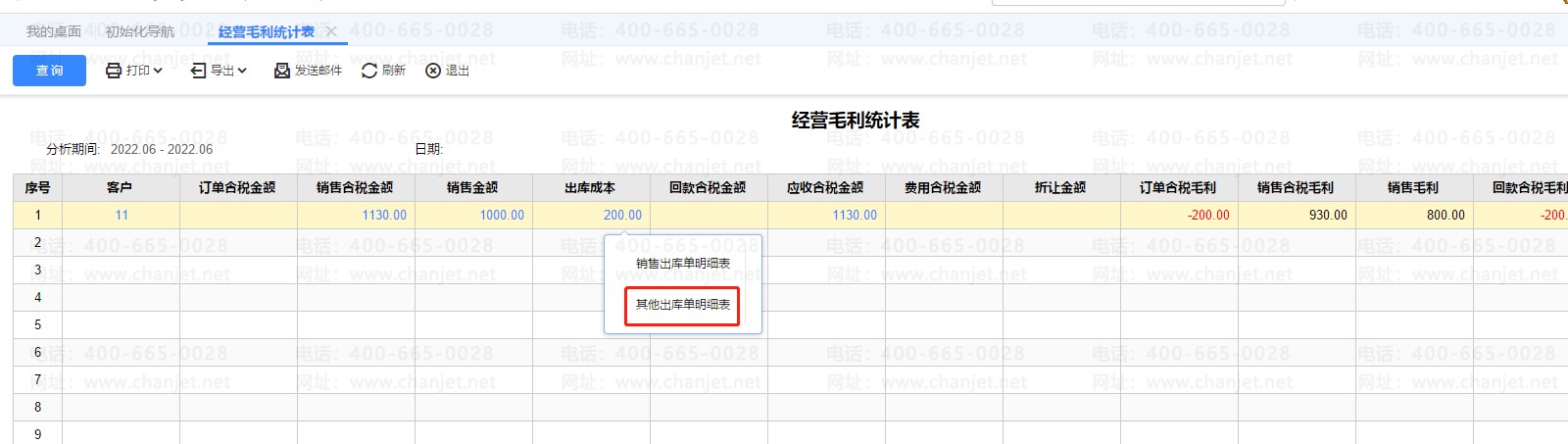 做了其他出库单,但通过经营毛利统计表出库成本联查其他出库单明细表是空的;