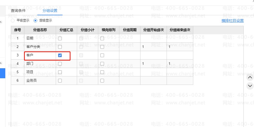 取消勾选【客户】,勾选【日期】