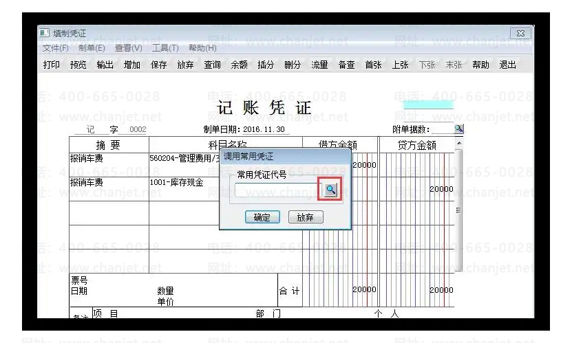3、直接输入常用凭证编码或者点击后面选择按钮