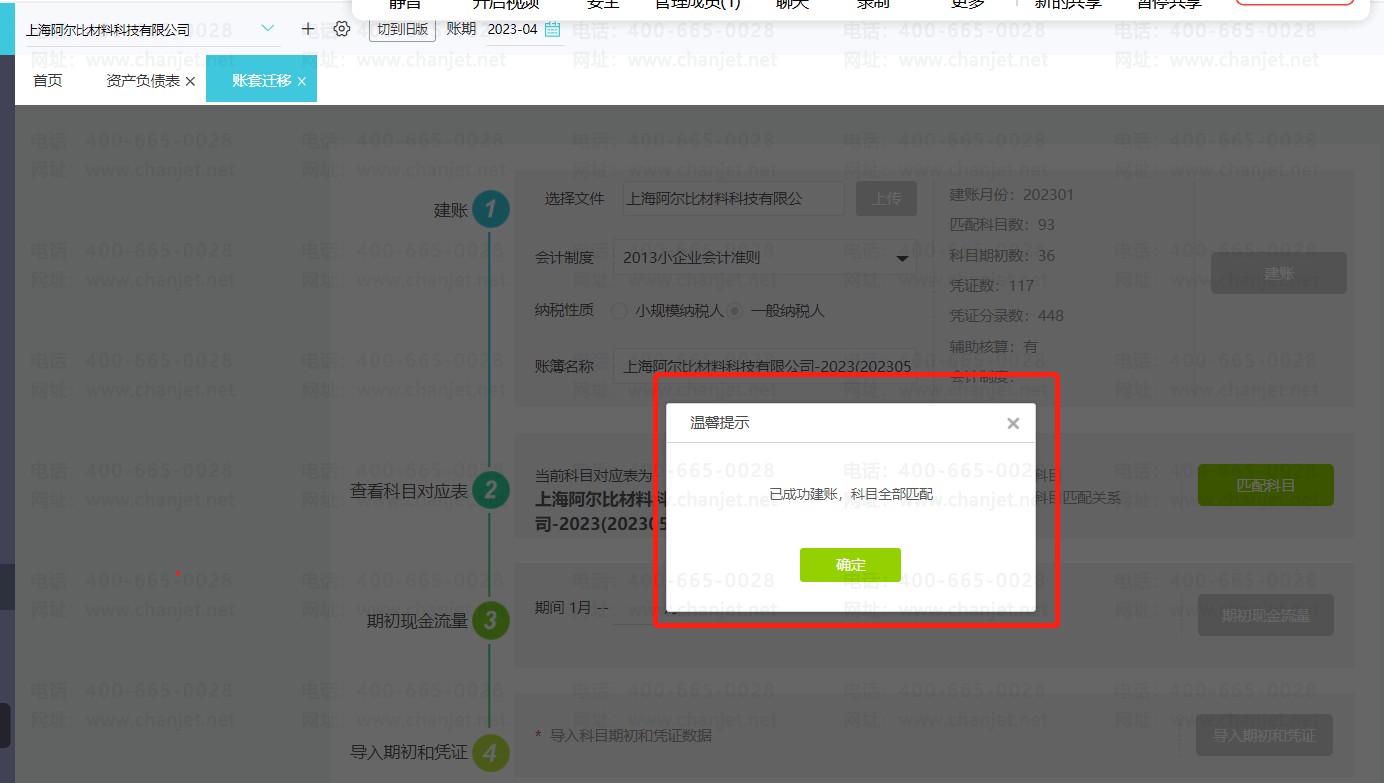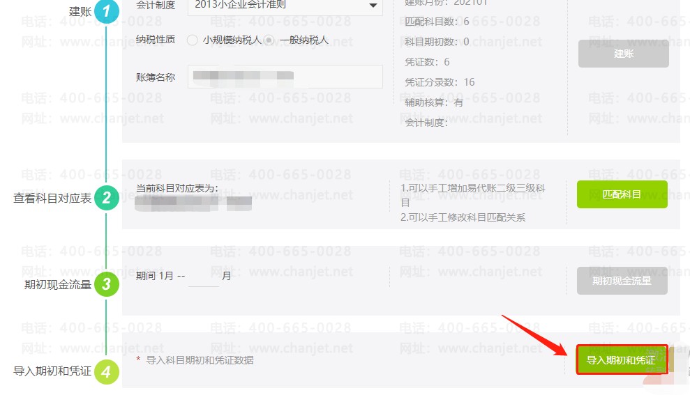 第⑤步:点击导入期初和凭证,等待系统转入完成,点击确定即可;