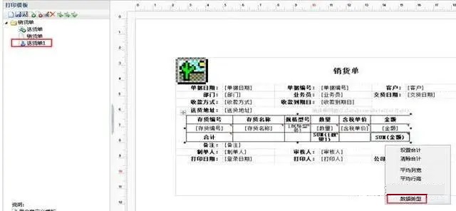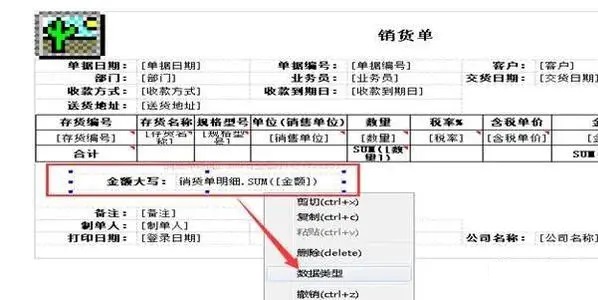 2、选中要修改的模板,点击合计这一栏中对应金额的单元格,鼠标右键-“数据类型”如图下: