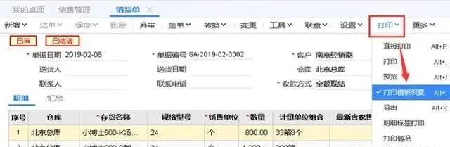 1、进入T+系统打开销货单,点击“打印”-“打印模板设置”,如图下: