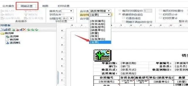 2、选中刚插入的文本框,名称改为金额大写,同时点击“明细设置”-“合计列”,选择“金额”,如图下: