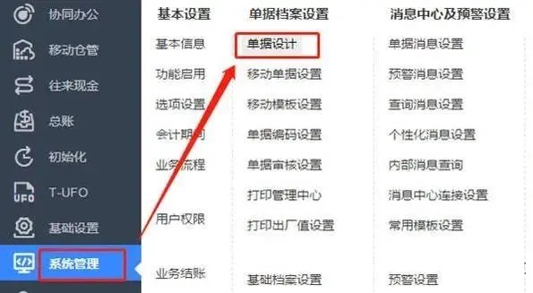 3、为了禁止业务员随意修改单价,那么就得对“含税单价”字段设置为不可修改,打开系统管理-单据设计,如图下: