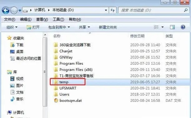 方法3:修改操作系统环境变量,首先在电脑硬盘建设个“temp”文件夹,如图下: