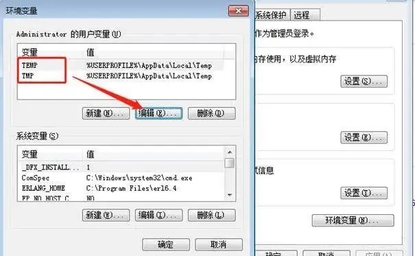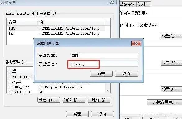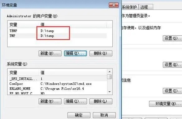 分别对TEMP、TMP进行编辑,录入变量值“D:\temp”并确定保存,如图下操作:
