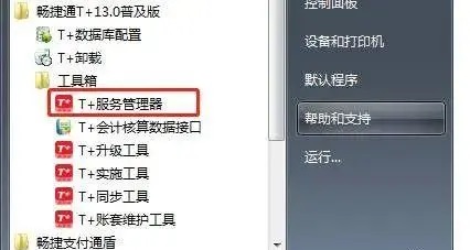 数据库服务已经启动了,还是登录不了用友T+系统,那就要来检查用友T+相关的服务是否都启动了,点击电脑左下角开始-所有程序-畅捷通T+普及版-工具箱-T+服务管理器