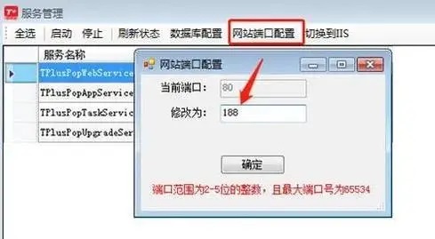 通过以上步骤基本就正常了,但是还得额外再补充一点,当对服务进行启动时,一直启动不起来,这时候就可能是端口的问题,我们得修改一个新的端口,如图下,点击“网站端口配置”,当前端口为80,修改另外一个端口为188。再点击确定,系统会自动调整并重启服务。