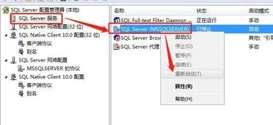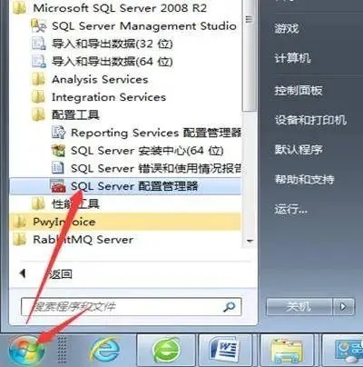 1、点击开始-程序-Microsoft SQL Server 2008 R2-配置工具-SQL Server配置管理器,如图下: